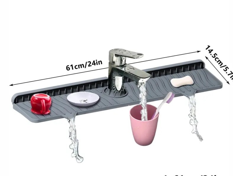 Keep your sink area clean and dry with this silicone faucet splash mat. Designed to catch water drips and splashes around the faucet, it helps prevent water stains and mess on your countertop. The flexible, non-slip silicone material stays in place and is easy to clean, ensuring long-lasting durability. Ideal for kitchens and bathrooms, this splash mat provides a simple and effective solution for keeping your sink area tidy and dry.